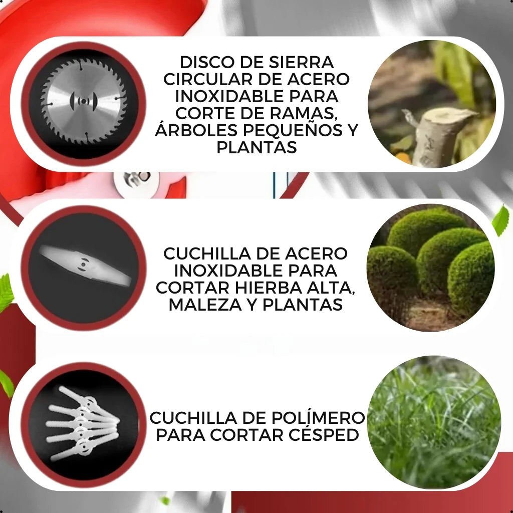 ✅ 8 Cuchillas Intercambiables – Incluye 1 disco para madera, 5 cuchillas para césped fino y 2 cuchillas planas para maleza alta, asegurando cortes precisos para cualquier necesidad.